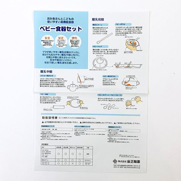 離乳食を始めた頃の赤ちゃんの食事を「お母さんが使いやすい」「こどもが使いやすい」ように形状に工夫された、ひとりでする初めての食事を応援する幼児食器セットです。◆セット内容:両手ボウル・ベビートレー・深皿・ベビーボウル・ストロー両手マグ(容量約180ml)・育児スプーン・ベビースプーン・ベビーフォーク◆電子レンジOK!食器洗い機OK!煮沸消毒OK!広い用途で使用できます。