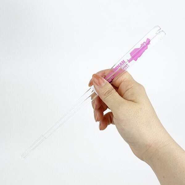 透明でキラキラ輝くクリア箸♪持ち手部分には、キャラクターのシルエットがデザインされていて、箸袋付き!おしゃれ〜♪先端には滑り止めが付いてとっても使いやすいです。耐熱温度が100度で食洗機にも対応しているので、お手入れも簡単です◎