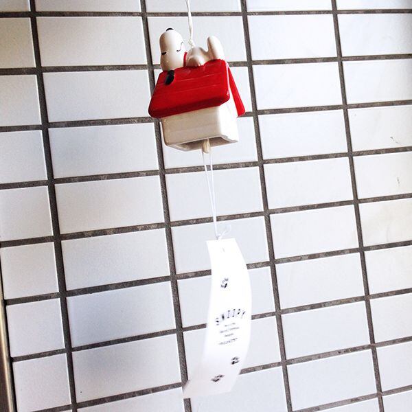 屋根に寝そべった姿の風鈴です。風に吹かれて気持ちよさそうなスヌーピーが涼しさを運んでくれます。