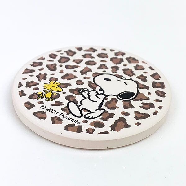スヌーピー 陶器製 給水コースター ヒョウ アニマルモチーフ 直径9cm 素焼き 裏面コルク 食器