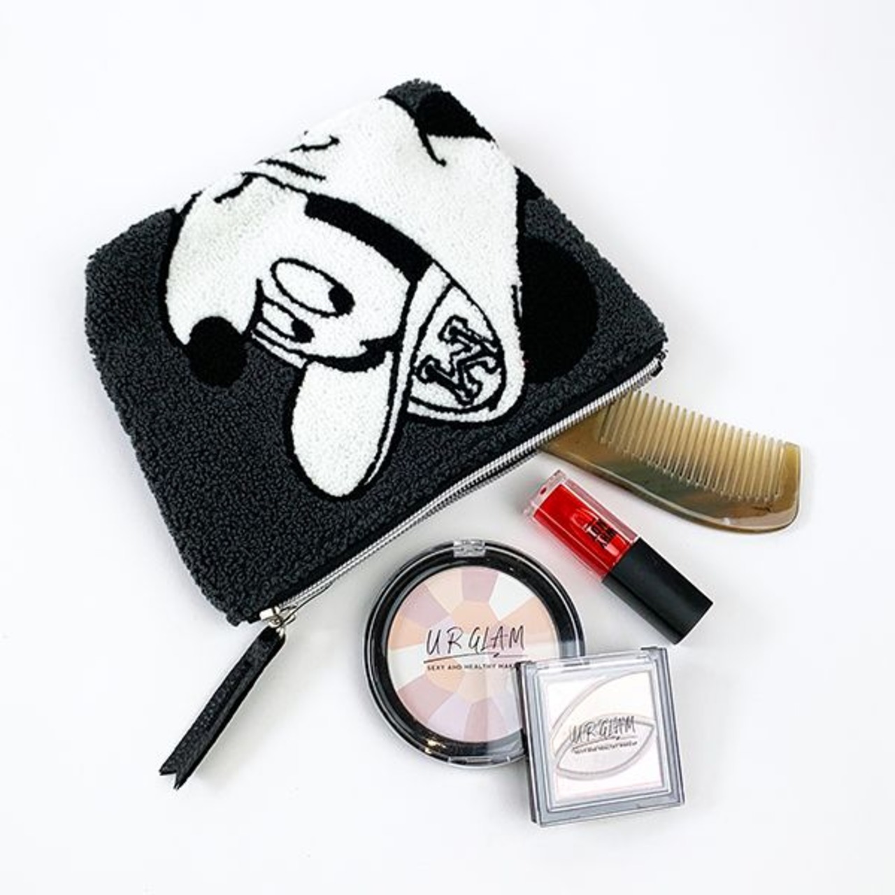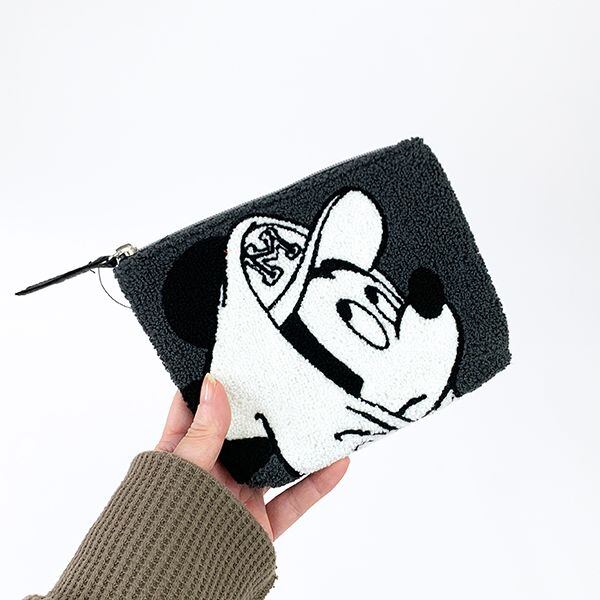 ディズニー ミッキー サガラ ポーチ 黒 化粧ポーチ もこもこ 小物入れ