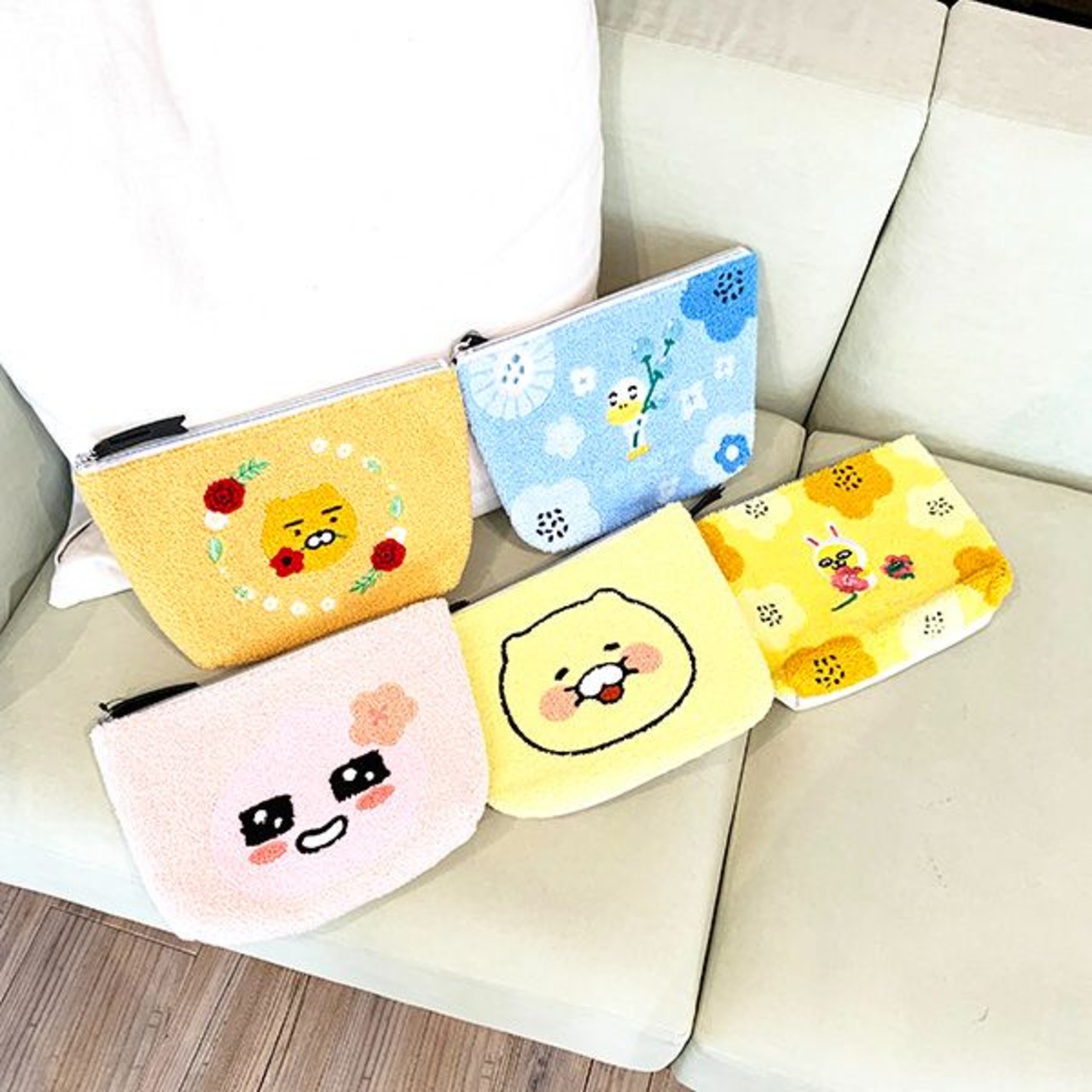 韓国発のコミュニケーションアプリ・カカオトークの公式キャラクター「カカオフレンズ」がもこもこサガラ刺繍のポーチになりました!ほど良い大きさで使い勝手の良いサイズ感です◎