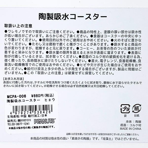 スヌーピー 陶器製 給水コースター 虎 アニマルモチーフ 直径9cm 素焼き 裏面コルク 食器