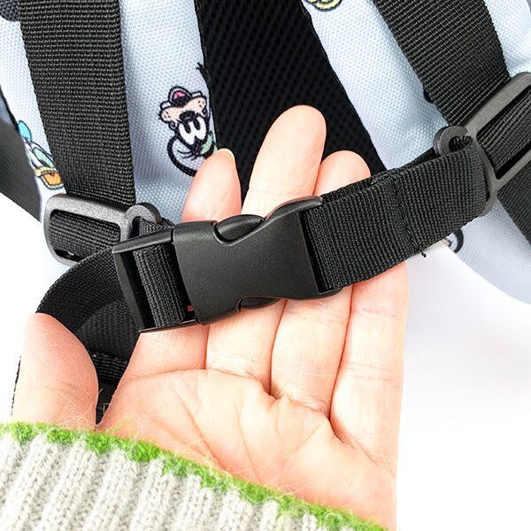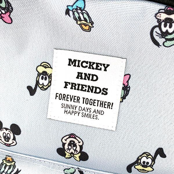 ミッキーとフレンド達の絵がプリントされた子供用バッグです♪通園や普段使いとしておすすめです。ショルダーは柔らかく、ずれ落ち防止のハーネス付きです。
