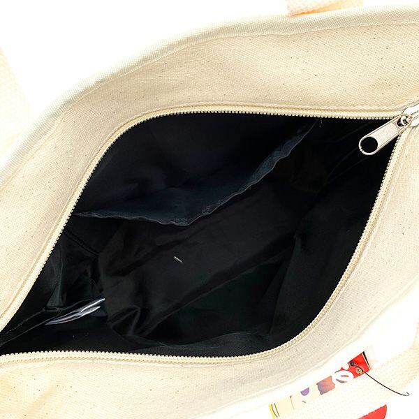 前面にカワイイイラストが描かれているバッグです。小さめなので、ランチバッグやデイリー使いにも◎チャック付きなので中身も見えなくて安心です♪中にポケットが一つあります。