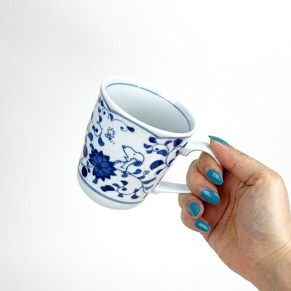 藍唐草とスヌーピーのマグ&ケーキペアセットです。伝統的な唐草のスヌーピーデザイン。大人が毎日使いたくなるモダンでお洒落な和食器です。スヌーピ好きや、海外の人へのプレゼントにも喜ばれますね♪本商品は「染付製法」による食器です。商品によって釉薬、色の濃淡がございます。予めご了承ください。電子レンジ・食洗器使用可◎【サイズ】マグ:幅80×奥行80×高さ90mm(280ml) 、五寸皿:幅165×奥行165×高さ25mm
