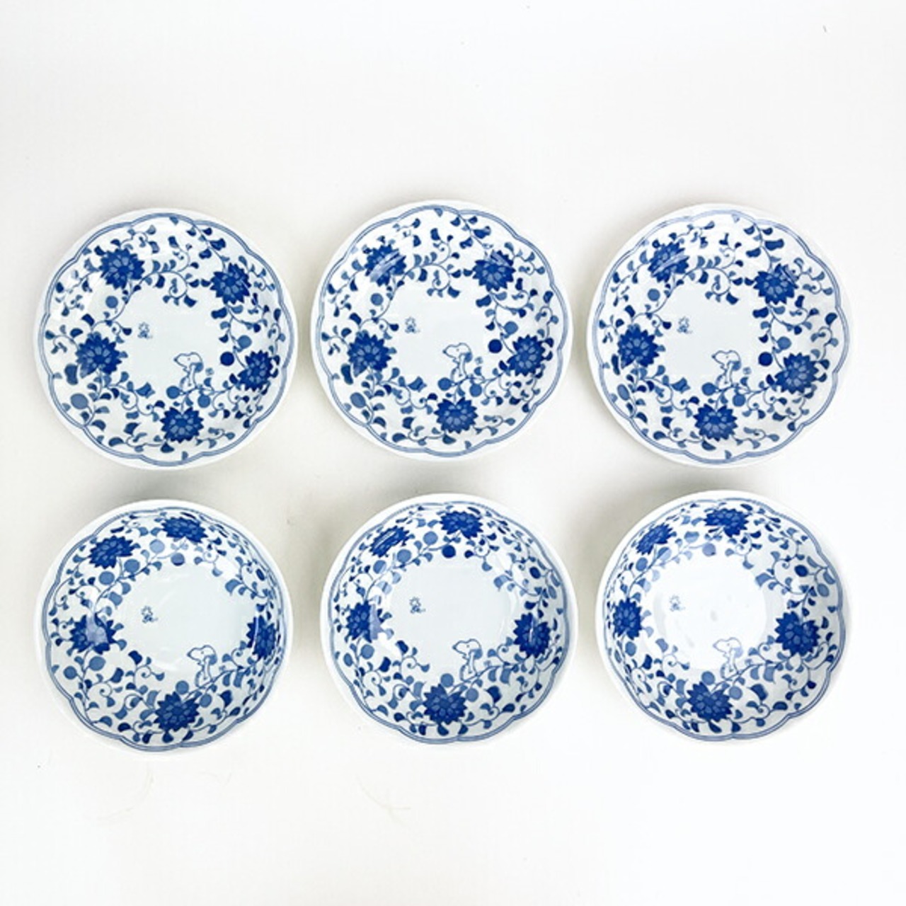 スヌーピー 藍唐草 皿鉢三揃(五寸皿×3・多用鉢×3) 日本製 SNOOPY