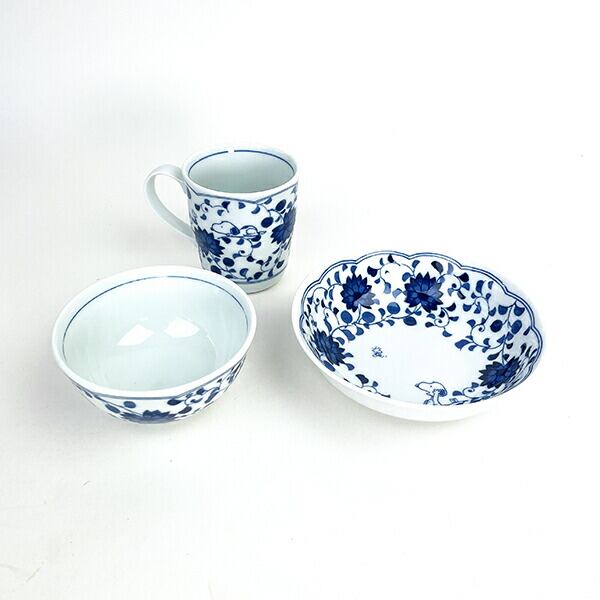 藍唐草とスヌーピーのお茶碗&マグカップ&鉢の3点セットです。伝統的な唐草のスヌーピーデザイン。大人が毎日使いたくなるモダンでお洒落な和食器です。スヌーピ好きや、海外の人へのプレゼントにも喜ばれますね♪本商品は「染付製法」による食器です。商品によって釉薬、色の濃淡がございます。予めご了承ください。電子レンジ・食洗器使用可◎【サイズ】茶碗:直径110×60mm、マグ:直径80×90mm、鉢:直径155×45mm