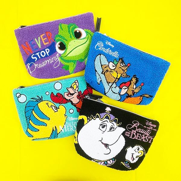 サガラ刺繍でディズニーのキャラクター達をデザイン♪必要な小物類が全部入ってしまう大きさ。一本の糸をかぎ状の針ですくいあげながら縫う手法。毛糸をつかったふわふわとした感触の高級な立体感のある刺繍がおすすめです。