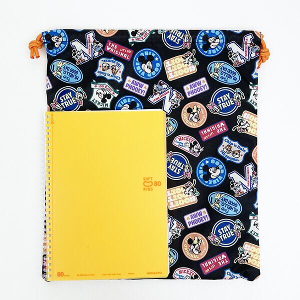 ディズニー スクールシリーズ 巾着 L ブラック 入学 入園 新学期 キッズ ポーチ 体操着入れ