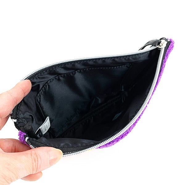 モコモコとしたさがら刺繍を前面に使用したポーチ!たっぷり入るので小物や化粧品をまとめるのに大活躍!マスクポーチにも◎