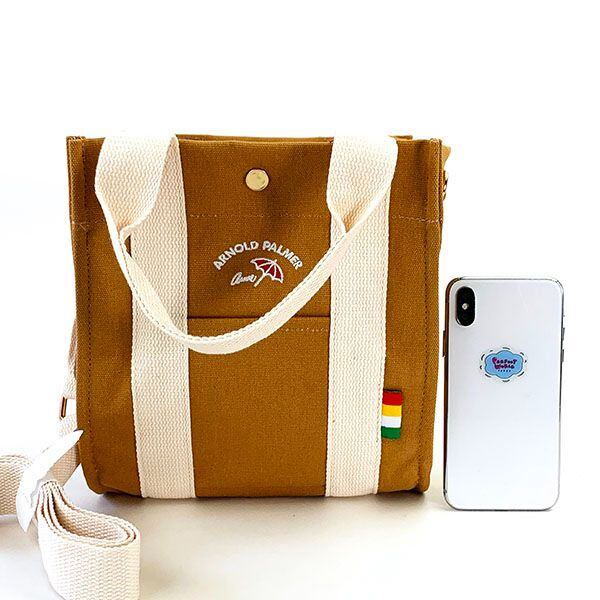 サイズ感が絶妙でとにかく使い易い、アーノルドパーマーのデザインがオシャレなショルダーバッグです♪小物を入れるのにも適した側面のオープンポケット、折り畳み傘やペットボトルの収納が可能な両側面の仕切りなど機能性も抜群です!!
