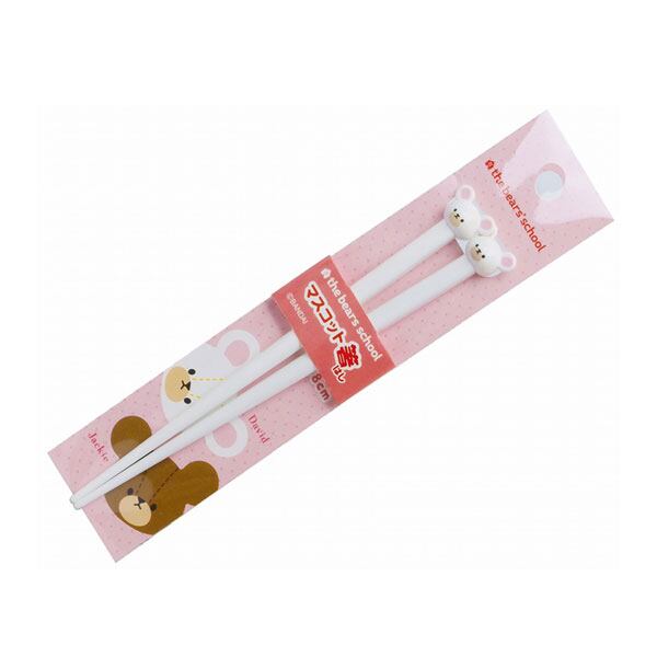 かわいいマスコット付きお箸のシリーズ★<br>「くまのがっこう」のデイビッドのお顔が付いた、かわいいお箸の登場です☆デイビッドのキュートさで、ごはんの時間を楽しく!<br>中高生のお弁当のお供にも注目度UPです♪<br><br>サイズ:長さ18cm<br>素材:ABS樹脂・AS樹脂<br>備考:耐熱温度:-30〜80℃ 食洗機不可<br>(C)BANDAI<br>JAN:4964412799425<br>