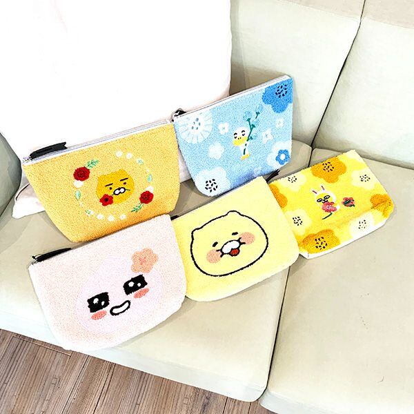 韓国発のコミュニケーションアプリ・カカオトークの公式キャラクター「カカオフレンズ」がもこもこサガラ刺繍のポーチになりました!ほど良い大きさで使い勝手の良いサイズ感です◎