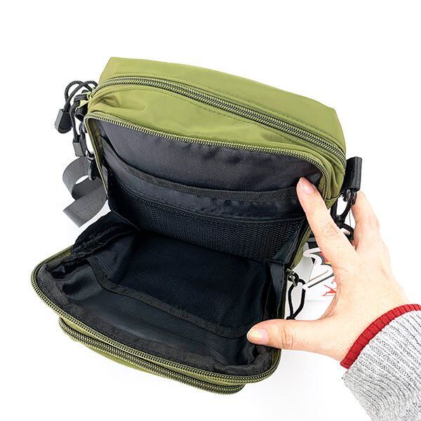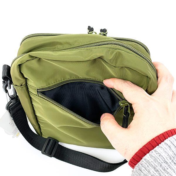 アーノルドパーマーのコンパクトだけど収納力抜群のショルダーです。前面にパカっと開くポケットが2つ付いていて、小物の整理がしやすく荷物が迷子になりません!デザインもシンプルなので、男女問わずお使いいただけます♪