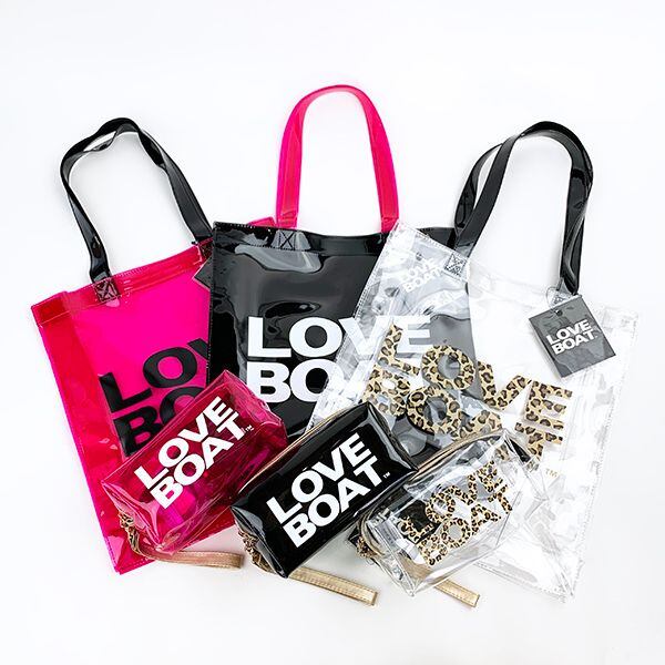 当時から変わらないインパクトあるロゴが一際目を引くクリアトートバッグ。普段使いからプールやビーチシーンなど、イベントやちょっとしたお出掛けにも便利!カラーはクリアブラック・クリアピンク・クリアホワイト×レオパードの3色展開。人気再熱のLOVE BOATミラーをいれてセットで持ち歩くのもおすすめです♪◆サイズ:38cm×35cm×9cm