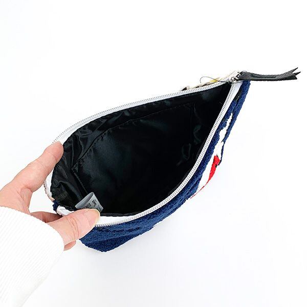 モコモコとしたさがら刺繍を前面に使用したポーチ!たっぷり入るので小物や化粧品をまとめるのに大活躍!マスクポーチにも◎