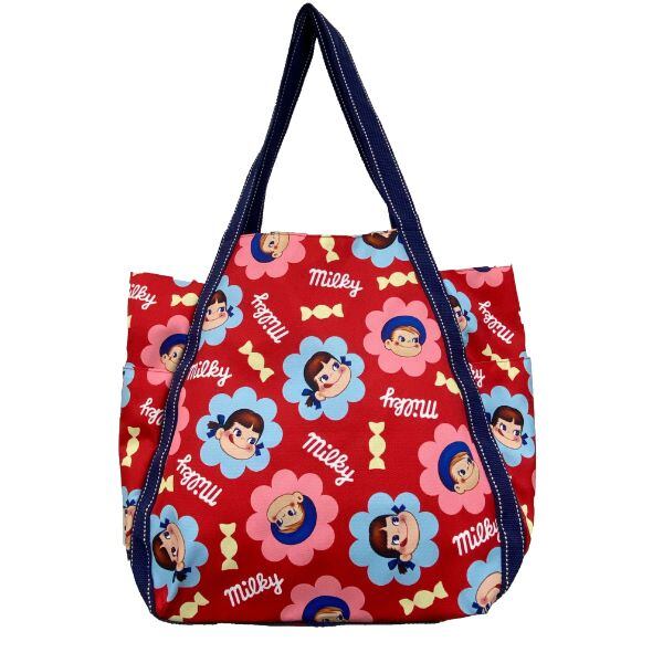 A3サイズが収納できちゃう大容量!!マチが広く、コロンとしたフォルムがかわいい大満足なバッグです。ペコちゃんとポコちゃんのミルキー柄は必見!!思わず欲しくなっちゃいますね☆◆サイズ:34cm×52cm×15cm