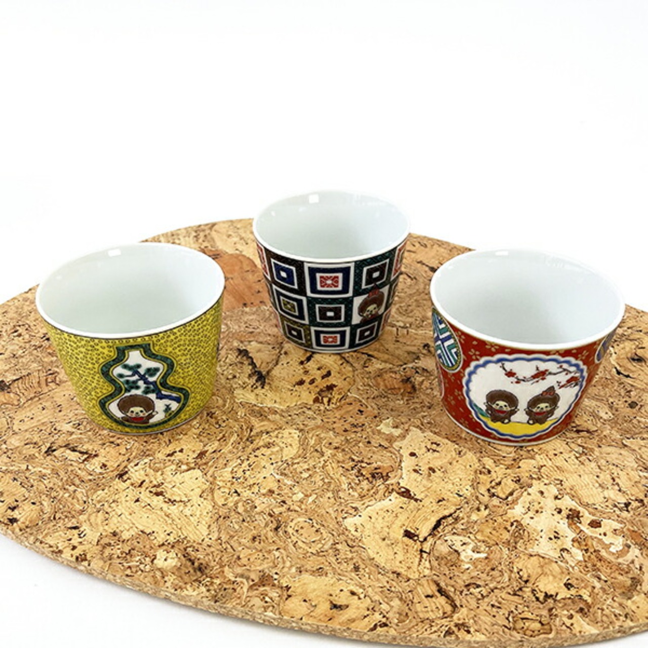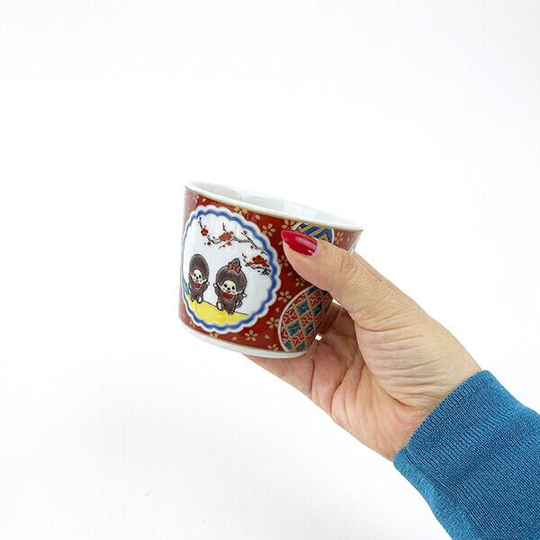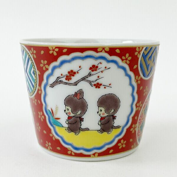 一点一点丁寧に描かれた、華やかな色絵が魅力的な、日本の伝統的な焼き物のひとつ「九谷焼」シリーズです。いつものモンチッチが九谷焼の世界観にマッチしていてとっても素敵ですね!【電子レンジ使用:可、食洗器使用:不可】