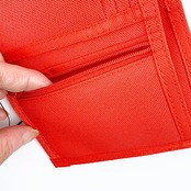 カジュアルなポリエステル生地のお財布です。お札、コイン、カード、ICカード入れがあるシンプルな作りです。厚さもないので、デイユーズにピッタリです♪