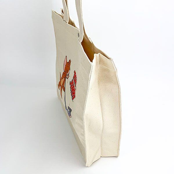 立場逆転?!トムピンチ!!な、大容量トートバッグです。丈夫なキャンバス生地で、内側に小さなポケットとスナップもついているので、使い勝手にもこだわっています!◆サイズ:縦39×横37.5×マチ12cm