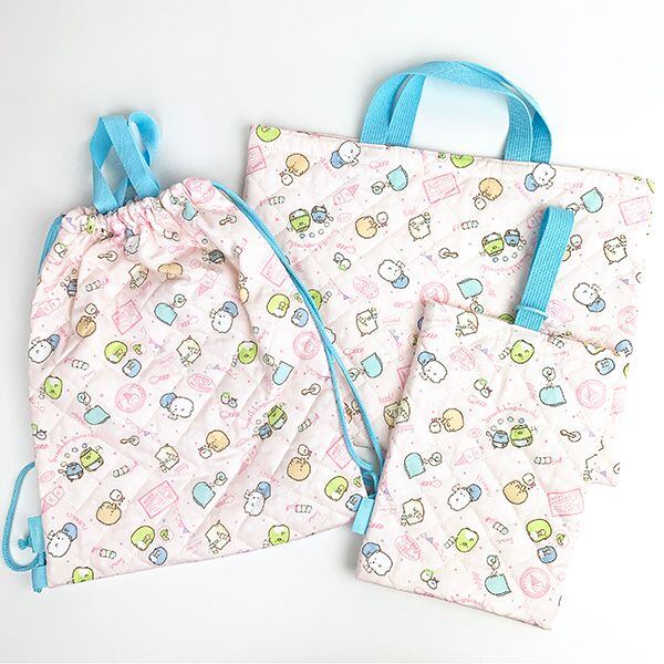 こちらは2wayで使える「キルトナップザック」です。トートバッグとして使っても良し、両サイドに紐が付いているのでリュックサックとしても使うことが出来ます◎内側に名前などを書けるネームタグがついています。キルティング素材のママの手作り風がとってもかわいいですね♪