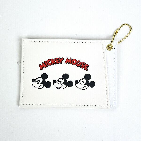 ディズニー 両面パスケース (ミッキーレトロB柄) オフホワイト ICカード 定期入れ 日本製 Disney