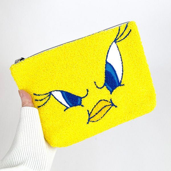 トゥイーティーは、ワーナー・ブラザースによるアニメ『ルーニー・テューンズ』に登場する黄色い鳥のキャラクター。目が青く可愛いドアップのお顔のサガラポーチが登場♪手のひらに収まりがよく、デイリーに使いやすいアイテムです。内ポケットにはオープンポケット1個付き♪好きなデザインを見つけてね!