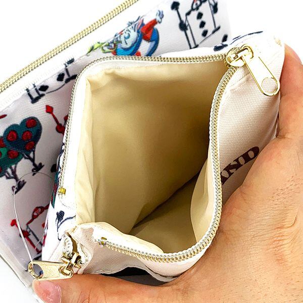 折りたたんで使える収納便利なポーチが登場♪トランプ兵の刺繍が可愛いデザインになっています♪