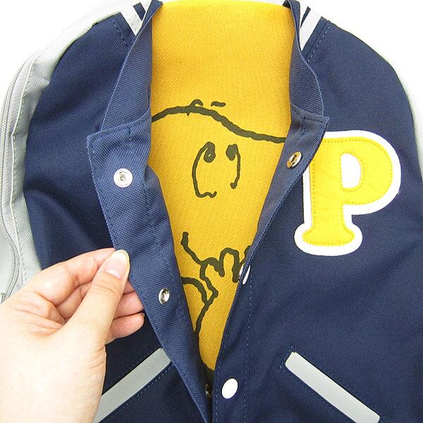 人気キャラクタースヌーピーのスタジャンデイパックが登場!<br>スタジャンを着たようなデザインがとってもオシャレで可愛い♪ボタンを外せばかわいいスヌーピーが顔を出すよ☆ちょっとしたお出かけからお買い物、通学カバン等様々な場面で活躍してくれそう!大好きなスヌーピーと外に繰り出せば気分もウキウキ♪プレゼントにもオススメのアイテムです!<br><br>サイズ:高さ44cm×横幅30cm×奥行13cm<br>素材:ポリエステル<br>備考:<br>(C)2016 Peanuts Worldwide LLC<br>JAN:4945834160192<br>長期休暇・返品、キャンセルについてはこちらをご確認ください