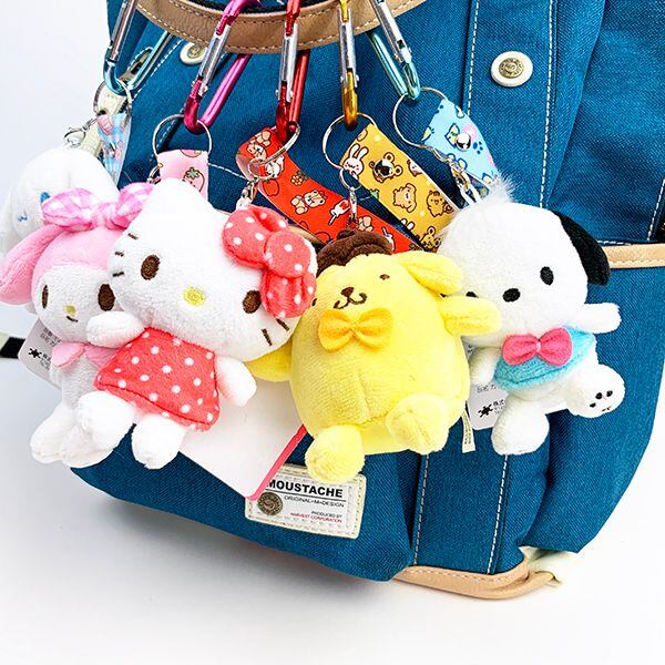 サンリオの人気キャラクターのポムポムプリンがカラビナ付きのマスコットキーホルダーになりました☆キャラクター毎に異なる可愛い総柄プリントのリボンが付いています。カラフルなカラビナで取付しやすいので、カバンやベルトループなど様々な場所にお使いいただけます◎全部で10種類もあるのでコレクションをする楽しみ方もあります。是非他のキャラクターも見てみてください♪