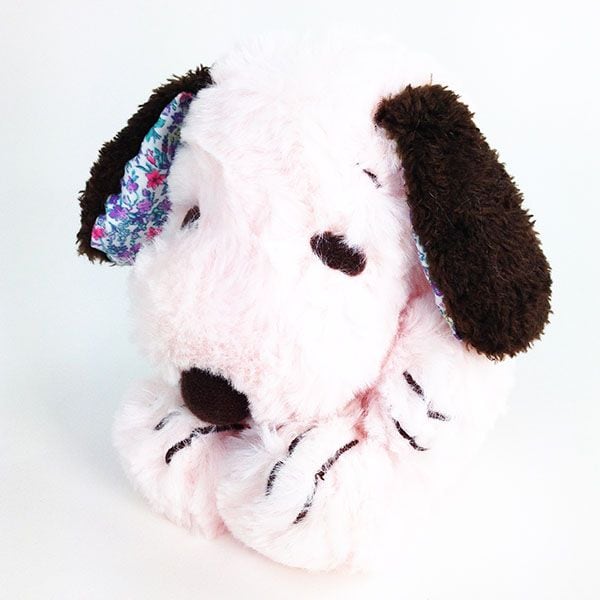 ふわっとクタっとペレット入りやわらかく、動くボディ。いつも一緒にいてね。うち耳がフラワー柄がかわいい。