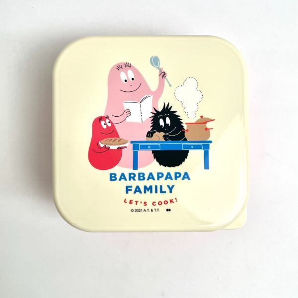 バーバパパたちがクッキングをしているランチボックスです。3サイズあるので、お弁当利用はもちろん、お菓子を入れて持ち歩いてもいいですね♪◆Lサイズ:縦横11.9×高さ5.5cm(530ml))、Mサイズ:縦横10.4×高さ5cm(360ml) 、Sサイズ:縦横8.8×高さ4.4cm(230ml)◆本体(フタを除く)電子レンジ可、食器洗浄機不可(耐熱140度、耐冷-30度)