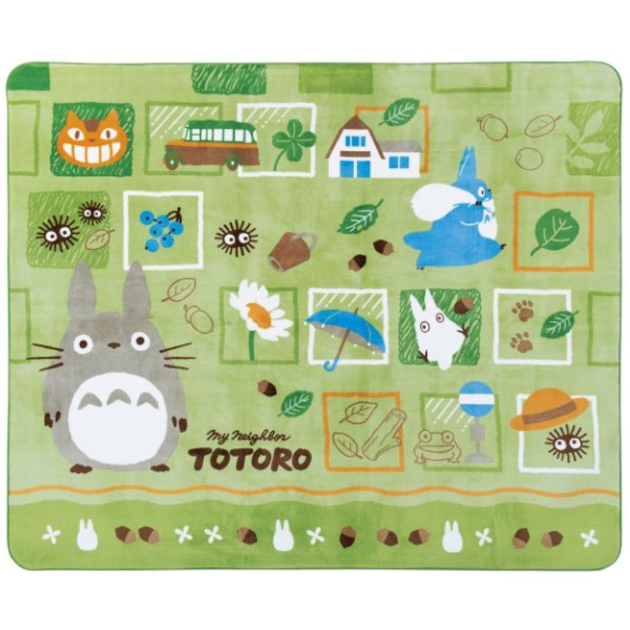 トトロと仲間達の楽しい絵柄のマットです。サラサラ素材で踏み心地が気持ちよく、クッション性も◎13ミリのウレタンクッションが入っているので、防音効果も期待できそうです!大きさ:200×240cm 洗濯可