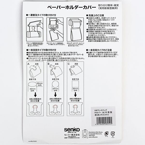 ちらりと覗くミッフィーのかわいいイラストのペーパーホルダーです。ふっくらした生地の柔らかい手触りのデザインです。