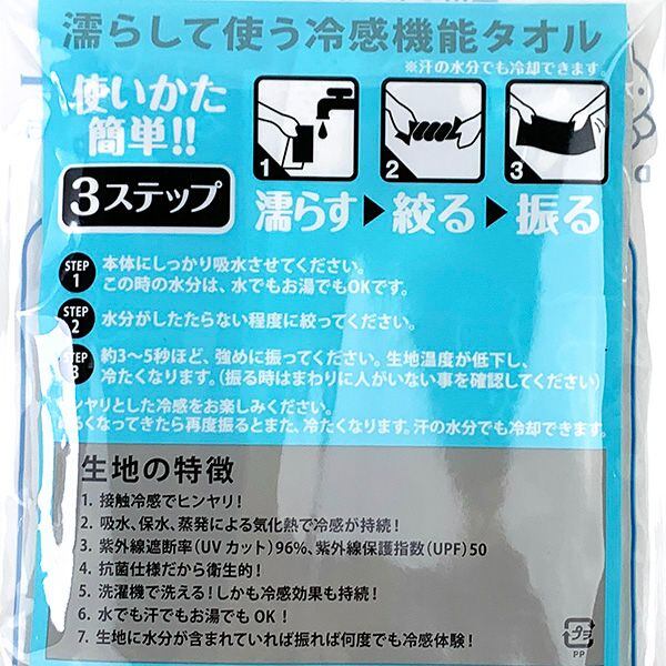 使い方簡単3ステップ。濡らす→絞る→振る 首に巻いて暑さ対策に便利にお使いいただけます。96%UVカット・UPF50、しかも抗菌仕様なのもうれしいです!◆サイズ:0.25cm×1cm×0cm