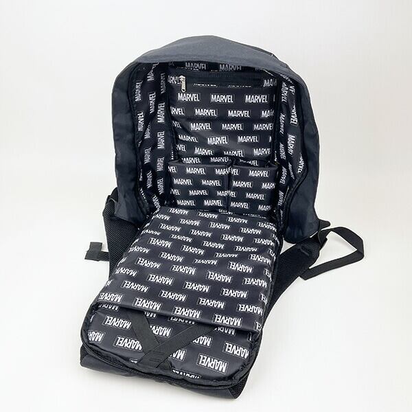 防犯性に優れたリュックサックです。後ろから開けづらいファスナーの位置、頑丈で破れづらい素材!背中側のポケットはクッション性もあるため、ノートパソコンなどを入れるのに◎MARVELのロゴが描かれたシンプルなデザインのためどんなシーンでも使いやすいアイテムです!