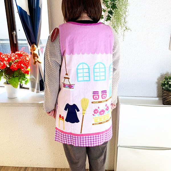 袖なしタイプの割烹着(ラン型エプロン)です。可愛いキャラクターのイラストで前も後ろも可愛い♪深型ポケットが付いているのでとっても便利です。家事をやるときや、先生方にもおすすめです♪
