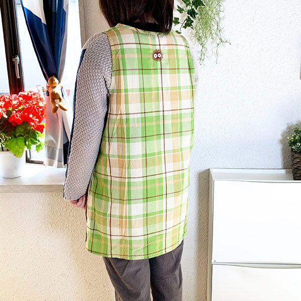 袖なしタイプの割烹着(ラン型エプロン)です。可愛いキャラクターのイラストで前も後ろも可愛い♪深型ポケットが付いているのでとっても便利です。家事をやるときや、先生方にもおすすめです♪