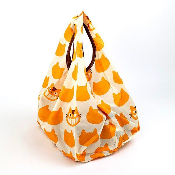 スタジオジブリ となりのトトロ ネコバスパターン ミニエコバッグ ジブリ かばん 買い物袋 おでかけ オレンジ