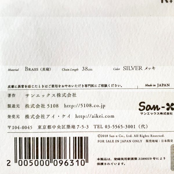 リラックマ RK×5108 きぐるみ silver シルバー アクセサリー ネックレス コトバ