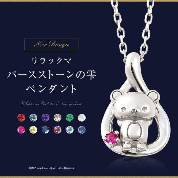 リラックマの誕生石ネックレス。受注をうけてから一つずつ手作りでお届けするプレミアムネックレスです。