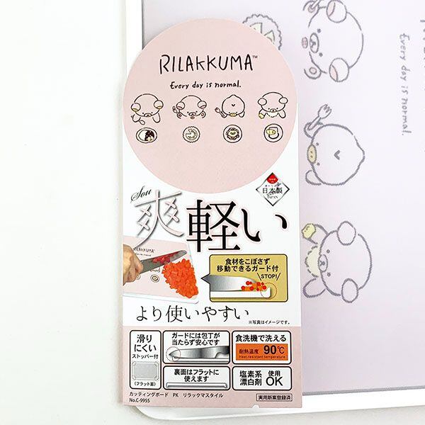 日々の生活の中でもっと使いたくなる、オトナの女性のための「リラックマスタイル」からカッティングボードが登場です。優しいタッチのリラックマたちがかわいすぎる♪耐熱温度は90℃、食洗器、漂白剤OK!滑りにくいストッパー付きで安心。ガード付きなので、食品がこぼれにくく、刃先が当たらず安全です。信頼の日本製です。