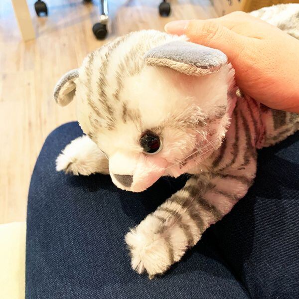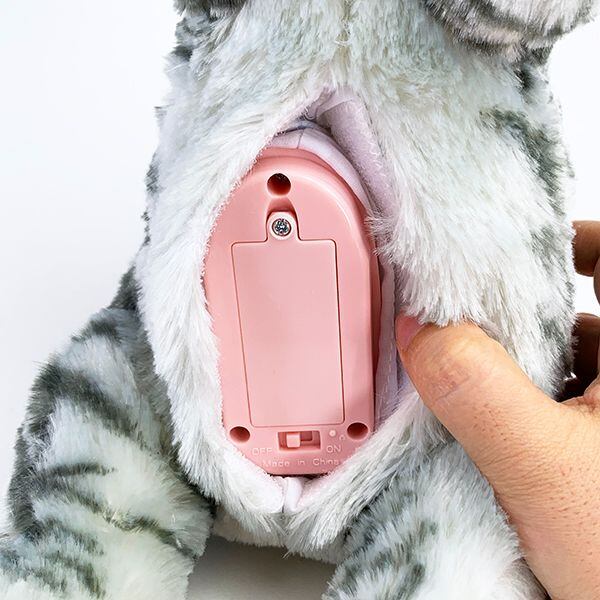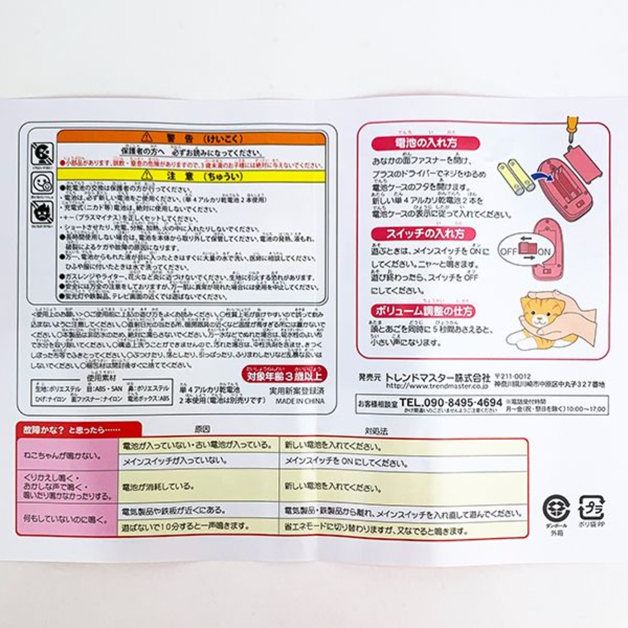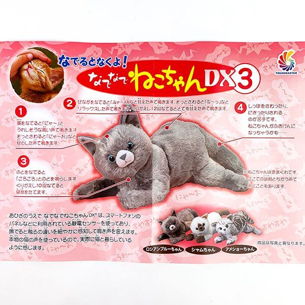 なでたり話しかけると鳴いて答えてくれます。まるで本当に猫を飼っているみたい♪かわいがってあげてくださいね!