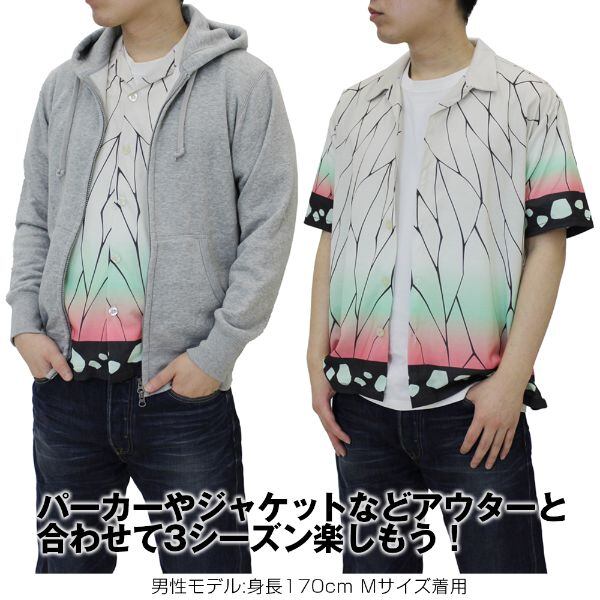 大人気アニメ、鬼滅の刃の胡蝶しのぶの羽織をイメージしたドライアロハシャツが登場。速乾性の高いコットンタッチなポリエステル素材を使用し、機能性も高いアイテム♪
