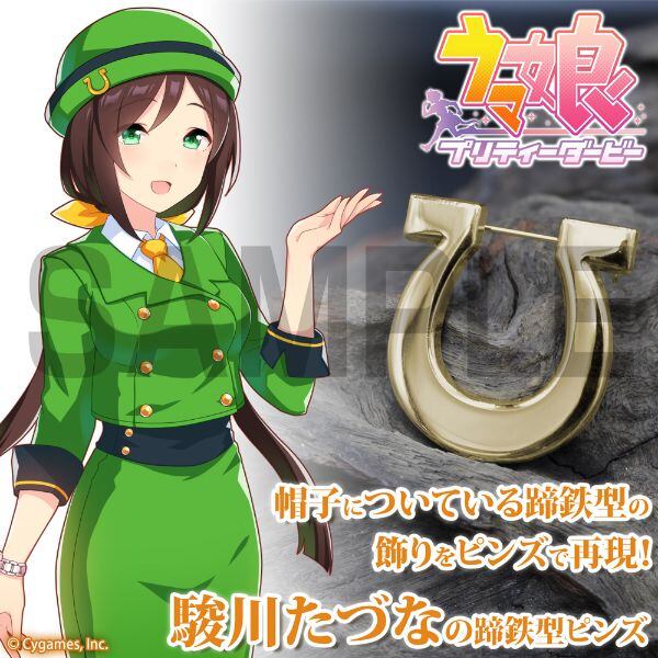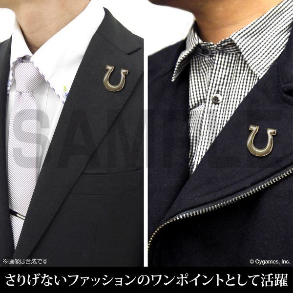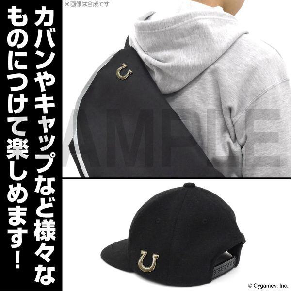 トレセン学園の理事長秘書である駿川たづなの帽子についている蹄鉄型の飾りをピンズで再現しました。裏面はピンズ仕様になっているので、お手持ちのジャケットやバッグや帽子などのお気に入りのアイテムに付けて普段使いとしてもOKです。
