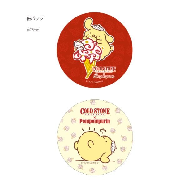 コールドストーン&ポムポムプリンが夢のコラボレーション!コールドストーンのアイスとポムポムプリンがかわいい缶バッチの登場です!