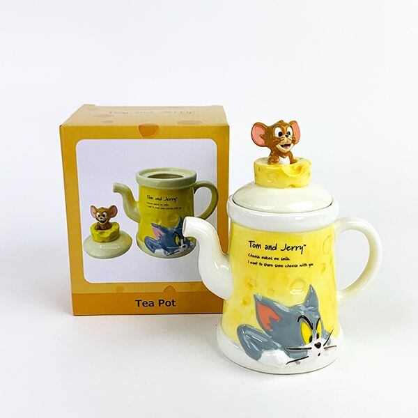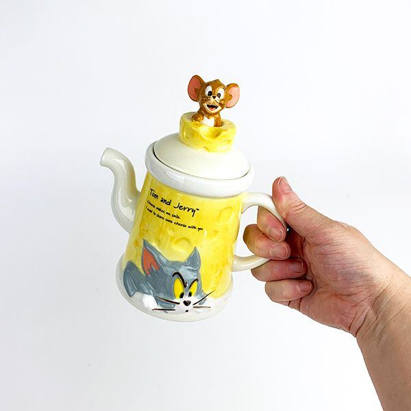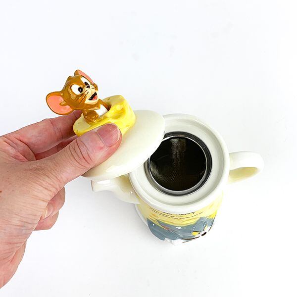 ジェリーのフィギュアがポットに付いたかわいらしいティーポット。後ろにはトムの尻尾がデザインされています♪ジェリーの後ろ姿もたまらない♪