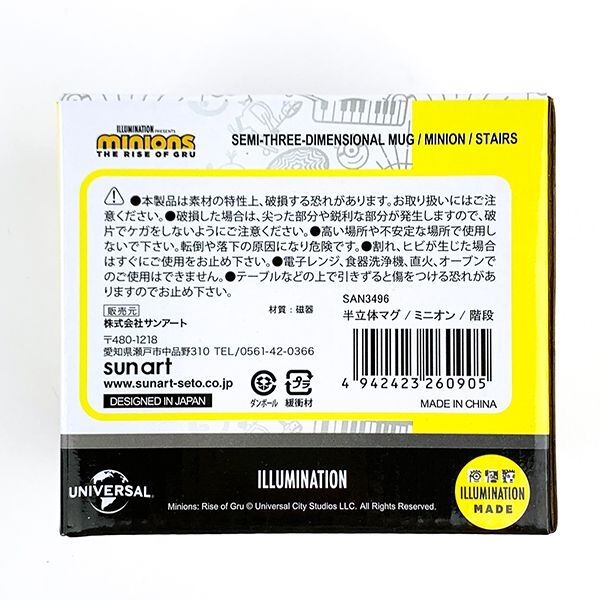 ミニオン達が降りる階段が半立体になっています。専用ボックス入りでプレゼントやギフトにもぴったり♪ 容量370ml