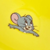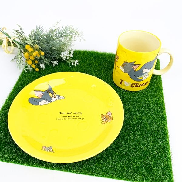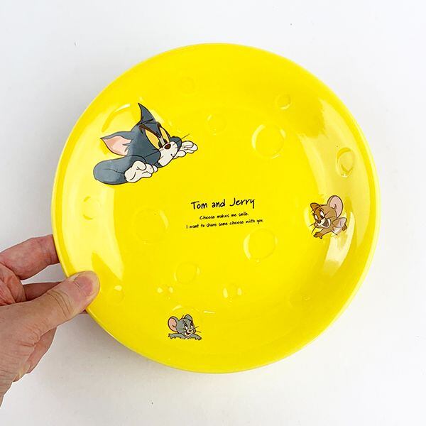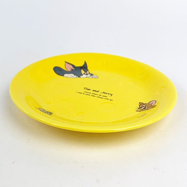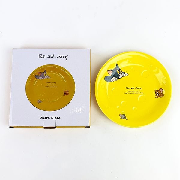 チーズの凹みのレリーフが入ったパスタ皿。穴から顔を出すトムとジェリーがかわいすぎる♪